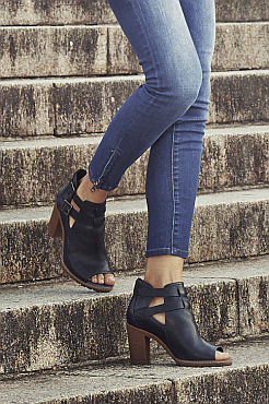Perfect for your unique sense of style, these peep-toe leather heels blend the best parts of women's booties and sandals. Everyone will think their sandals or leather boots look the cutest, until you enter the room in our Glancy peep-toe booties. Ruched leather flatters the ankle, while .