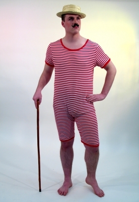 Damen Badeanzug Classic Sport Schwimmanzug mit Bein 52. Jusfitsu Damen Übergröße Einteiler Streifen Punkt Sport Badeanzug Schwimmanzug. Badeanzug für Herren oder Damen 19Bademeister Faschingskostüm. Badeanzug lang Anno Bademeister blau oder rot Fasching Karneval.