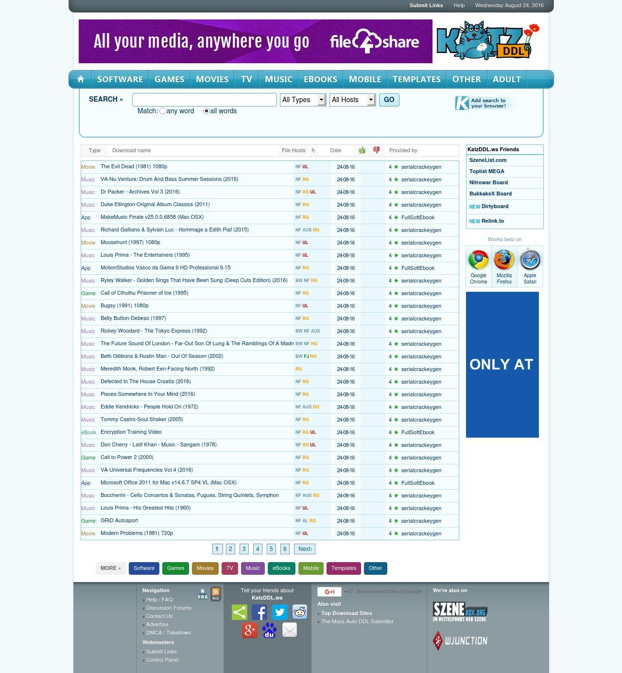Dies ist ähnlich wie 1load oder Kraftwerk ein Sammelbecken für Warez aller Art. E-Books am besten direkt nach betreten der Seite oben links . Site rankings for warez forums, DDL sites, Filehosts and Warez Blogs. Oftmals befinden sich derartige Warez-Portale in einer rechtlichen Grauzone.