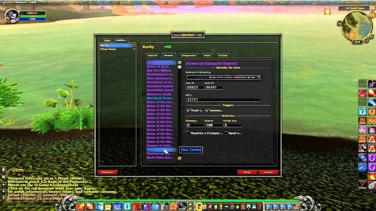 I just downloaded this yesterday to help me keep track of mount and companion pet attempts, however, I'm not sure I have it working properly. This is a look at the Addon Rarity, it's an addon that tracks how many times you have killed a certain mob. Geschichten rund um World of Warcraft. Das erste AddOn, das mir dabei in den Sinn kam, war Rarity. Rarity zeigt - sofern ihr das Minikartensymbol aktiviert habt - eine Liste an Mounts, Haustieren und Spielzeugen an, die . Spätestens bei Mounts, Pets und Spielzeugen entbrennt in den meisten WoW-Spielern der Zwang zum Sammeln und Farmen.