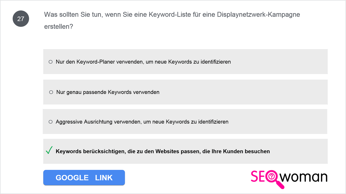 Wählen Sie die Keywords für Ihre Kampagne sorgfältig aus, damit Ihre Anzeigen auch tatsächlich bei der gewünschten Zielgruppe ausgeliefert werden. Keyword-Listen erstellen gehört zu der wichtigsten Aufgabe eines SEM Managers. Keywords sind erforderlich, um eine Anzeigenschaltung .